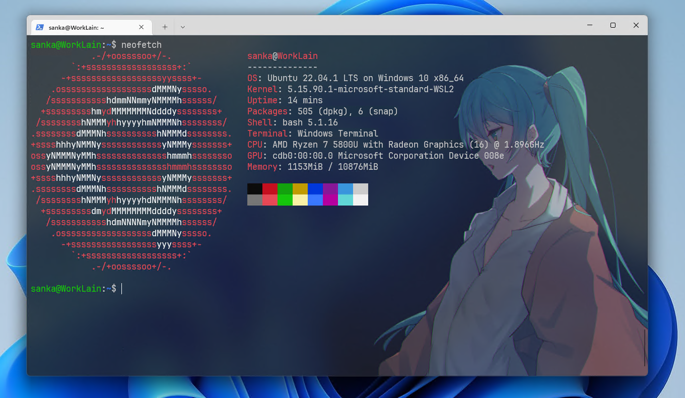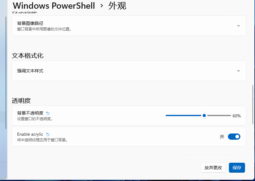 打开windows terminal 我比较喜欢用powershell 设置好背景图和透明度之后的效果: