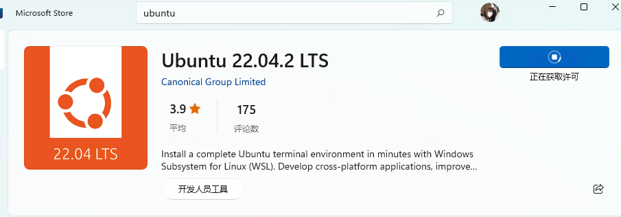 微软商店下载对应的发行版,还有安装wsl,直接搜索就好,这里我安装的是ubuntu22.04.2